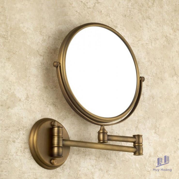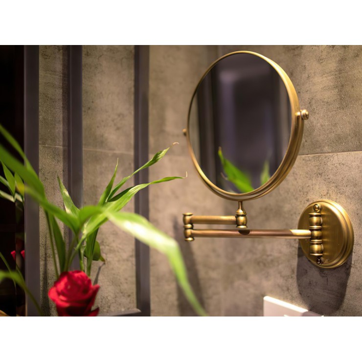 Gương cạo râu phòng tắm, 2 mặt, nhà tắm, khung bằng đồng thau, bề mặt thiết bị màu cổ mộc mạc phù hợp công trình tông cổ điển, mộc mạc, thiên nhiên.