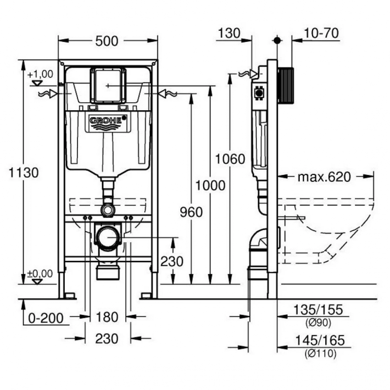 Két Nước Âm Tường Grohe 38528001 Gắn Bồn Cầu Treo