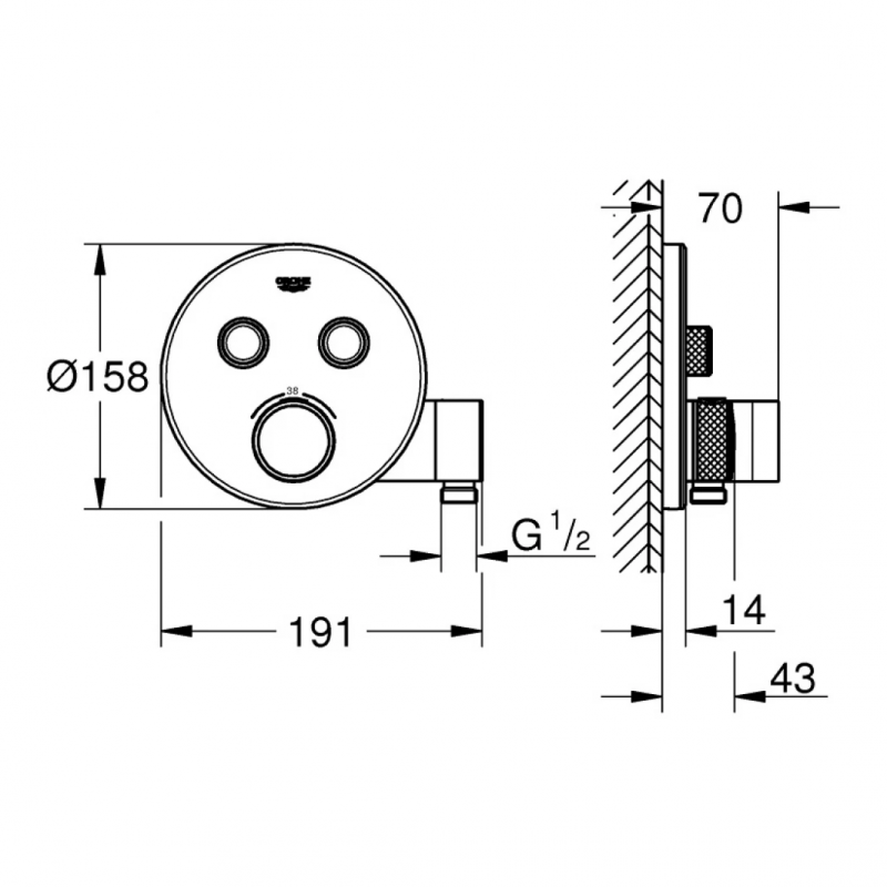 Mặt Bộ Trộn Âm Ổn Nhiệt Grohe SmartControl 29120000 + 35600000 Gắn Tường