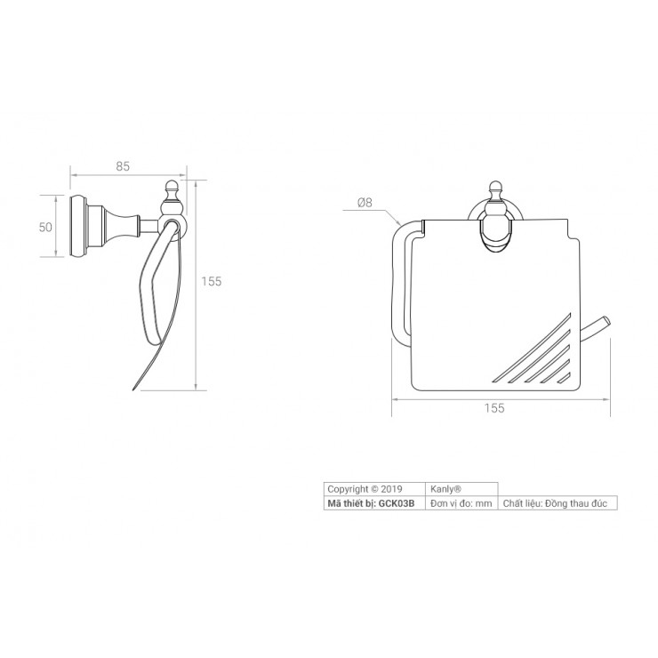 Móc Treo Giấy Kanly GCK03B Bằng Đồng Cổ Điển Màu Đen