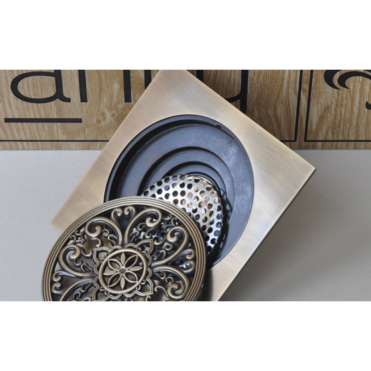 Phễu thoát sàn, cống hay hố ga ngăn mùi phù hợp với tông màu gạch hoặc các chất liệu khác của sàn của nhà, phễu bằng đồng đúc kiểu GCP15C là một kiểu dáng hoa văn và cổ kính nhưng sang trọng, hoàng gia.