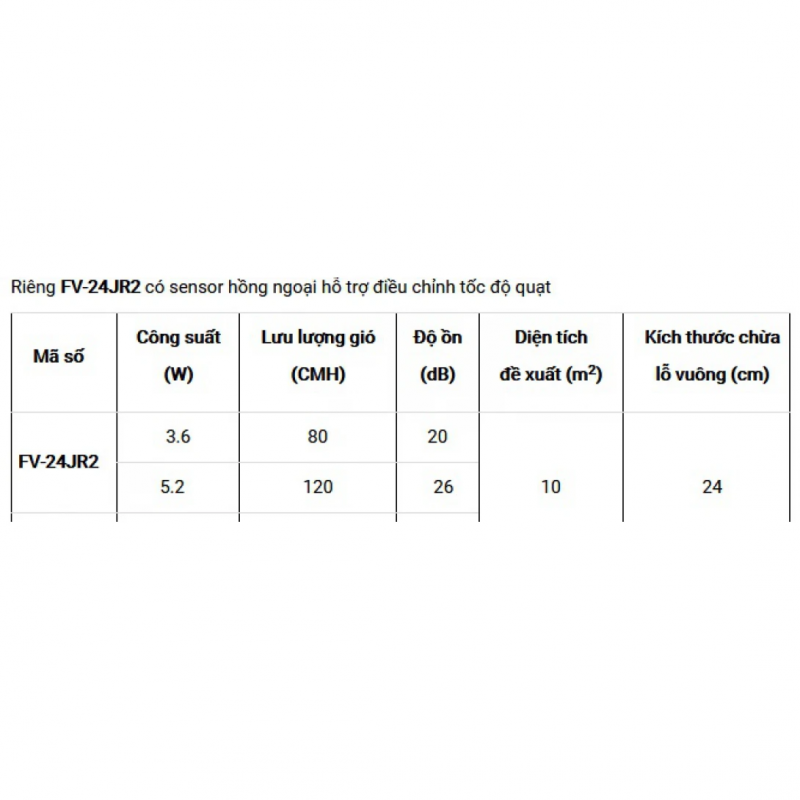 Quạt Hút Panasonic FV-24JR2 Âm Trần Có Sensor