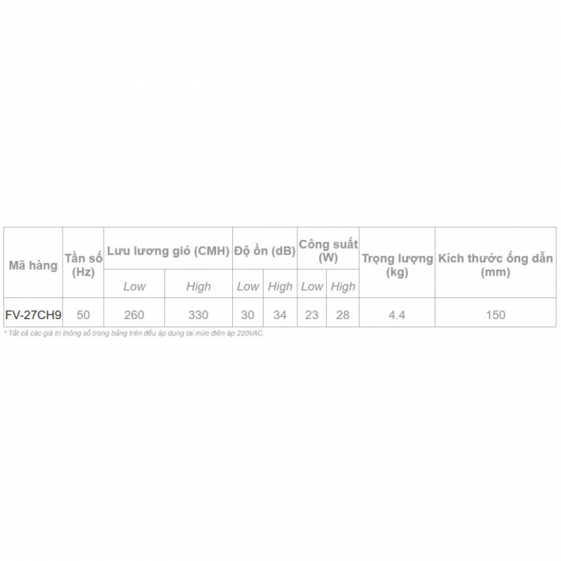 Quạt Hút Panasonic FV-27CH9 Âm Trần