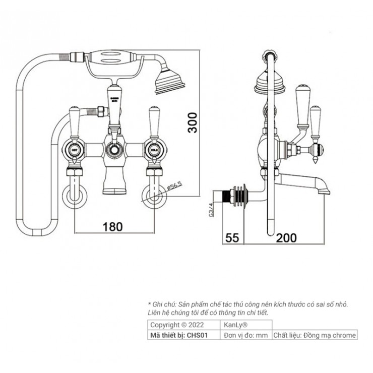 Sen Tắm Kanly CHS01 Nóng Lạnh Cổ Điển Đồng Mạ Chrome