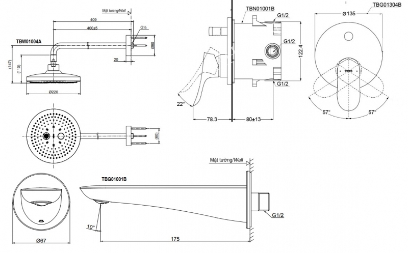 Vòi Sen Tắm Âm TườngSen Tắm Âm Tường TOTO