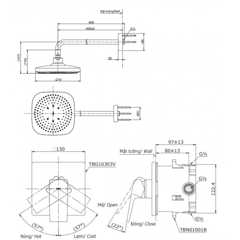 Vòi Sen Tắm Âm TườngSen Tắm Âm Tường TOTO