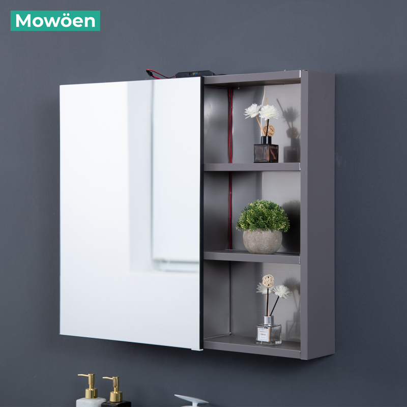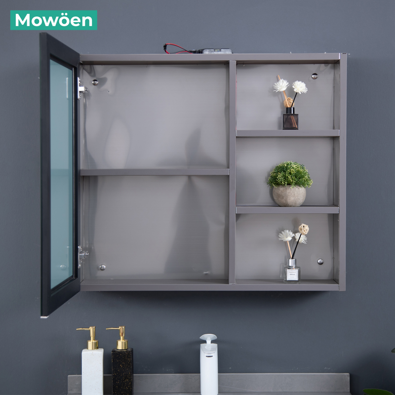 Tủ gương đi kèm với hệ cánh tủ mở, và các giá đỡ cung cấp không gian lưu trữ rộng rãi cho vật dụng cá nhân, kem đánh răng, xà phòng, đồ trang điểm và các đồ dùng khác.