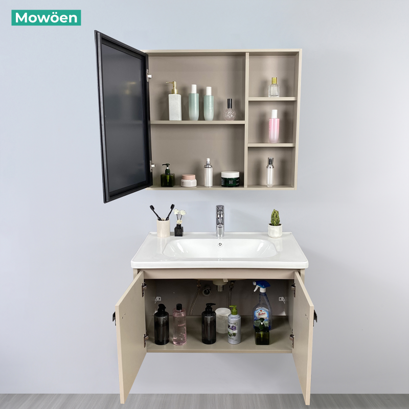 Tủ Lavabo treo tường phòng tắm thương hiệu Mowoen có đa dạng thiết kế, kiểu dáng, kích thước và màu sắc khác nhau để tạo điểm nhấn và phối hợp cùng không gian và phong cách trang trí tổng thể của phòng tắm.