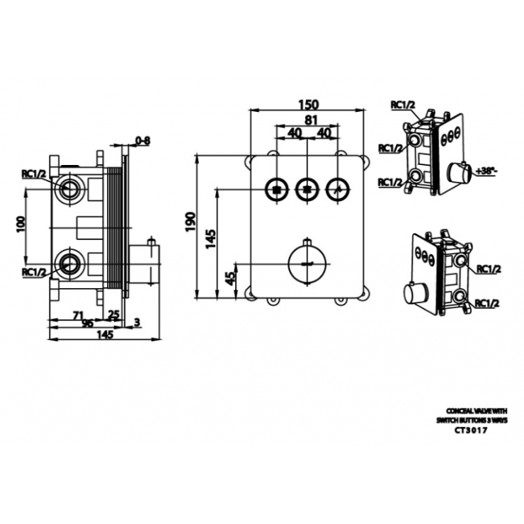 Van Điều Chỉnh Nhiệt Độ Cotto CT3017 Âm Tường 3 Đường Nước