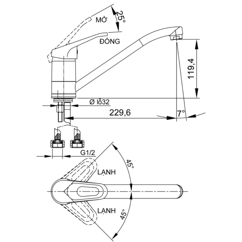 | Ghi chú | Cần xoay 360, bao gồm 2 sợi dây cấp |
