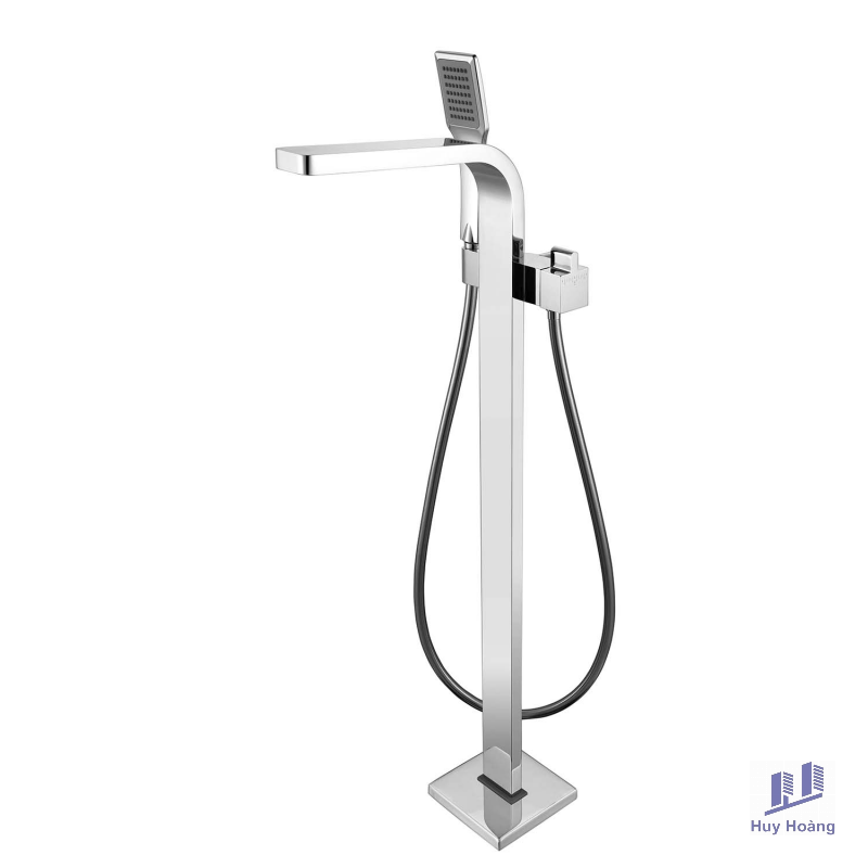 Thiết kế vòi đứng tương thích với chiều cao bồn tắm đặt sàn độc lập. Chân vòi có giá đỡ hình tròn, kết nối chắc chắn với nền phòng tắm.