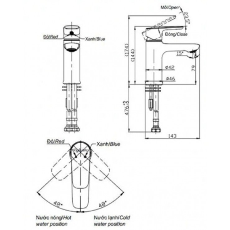 Vòi Chậu Rửa Mặt Lavabo Viglacera VG132 Nóng Lạnh