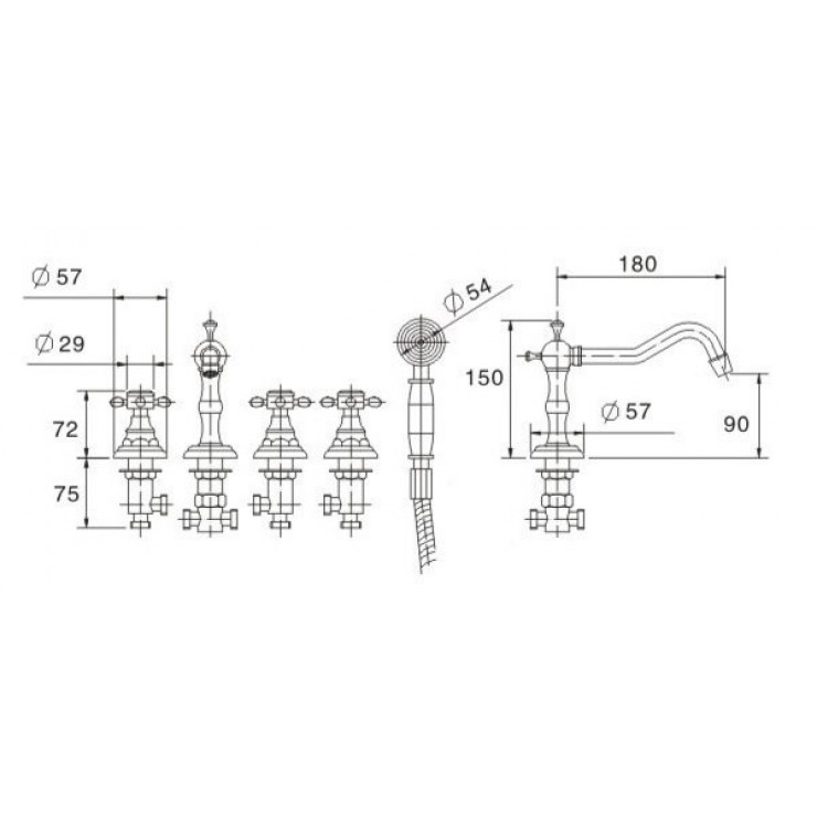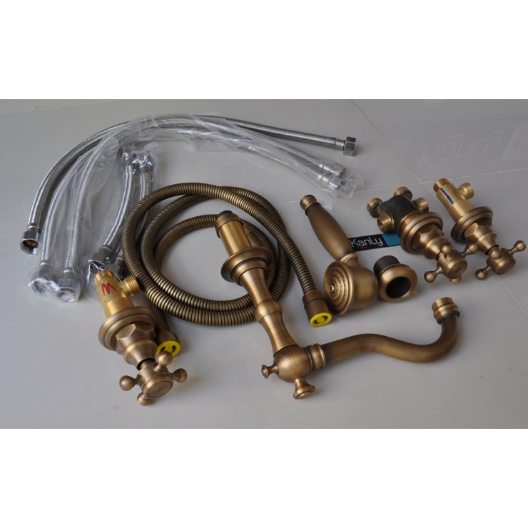 – Bộ vòi xả bồn 5 lỗ, cổ điển, cổ điển, vòi xả vô bồn tắm 5 lỗ, 4 lỗ 3 lỗ, sen tắm bồn, sen xả bồn, tắm nằm, kiểu GCB08 loại vòi xả nước vô bồn tắm có 5 lỗ, bằng đồng thau, dùng cho bồi tắm nằm cổ xưa, nước nóng lạnh, vòi 5 lỗ, vòi nước xả bồn, giả cổ có van nóng lạnh riêng biệt, thân thấp, gắn trên thành, vành bồn tắm, lắp đặt cấp nước lạnh bên phải, nóng bên trái.