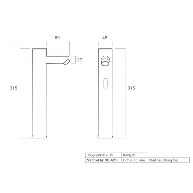 Vòi nước cảm ứng GCAC1 được hoàn thiện thiết kế từ chất liệu đồng thau giữ được nét cổ điển, sang trọng cho không gian nội thất phòng tắm.