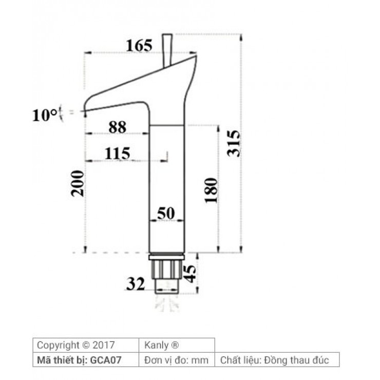 Vòi lavabo nóng lạnh Kanly đồng thau, cổ điển. Kiểu dáng hiết kế chiếc vòi được lấy ý tưởng liên quan đến dòng nước trong thiên nhiên, những dòng suối nhỏ, có thác đổ được lồng ghép vào kiểu dáng model GCA07 này, gạt nhẹ tay mở nước bạn sẽ thấy một dòng nước dâng trào lên và xuôi theo góc nghiên đổ xuống chậu rửa như là một dòng thác nhỏ. Nếu tông nội thất nhà bạn thiên về mộc mạc thiên nhiên hoặc bạn là người yêu thiên nhiên thì vòi nước này là một thiết bị để bạn lồng ghép thiên nhiên vào gian phòng nhà bạn.