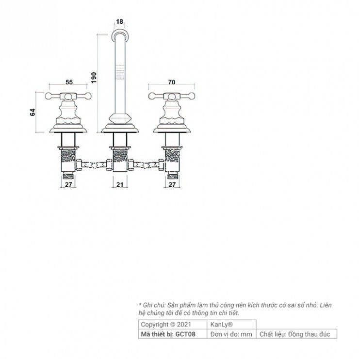 Vòi Lavabo Kanly GCT08 Nóng Lạnh Gắn Tường Giả Cổ
