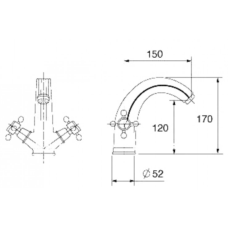 – Vòi Kanly kiểu GCV05 loại vòi cổ điển có van nóng lạnh riêng biệt, thân thấp, gắn trên thành, vành lavabo, chậu rửa, lắp đặt cấp nước lạnh bên phải, nóng bên trái.