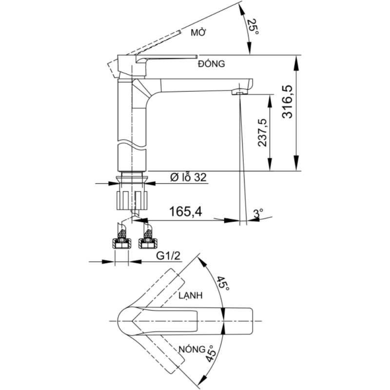 | Tên sản phẩm | Vòi lavabo nóng lạnh Luxta |
