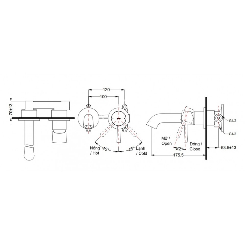 Vòi Lavabo TOTO TLS02307B Nóng Lạnh Gắn Tường