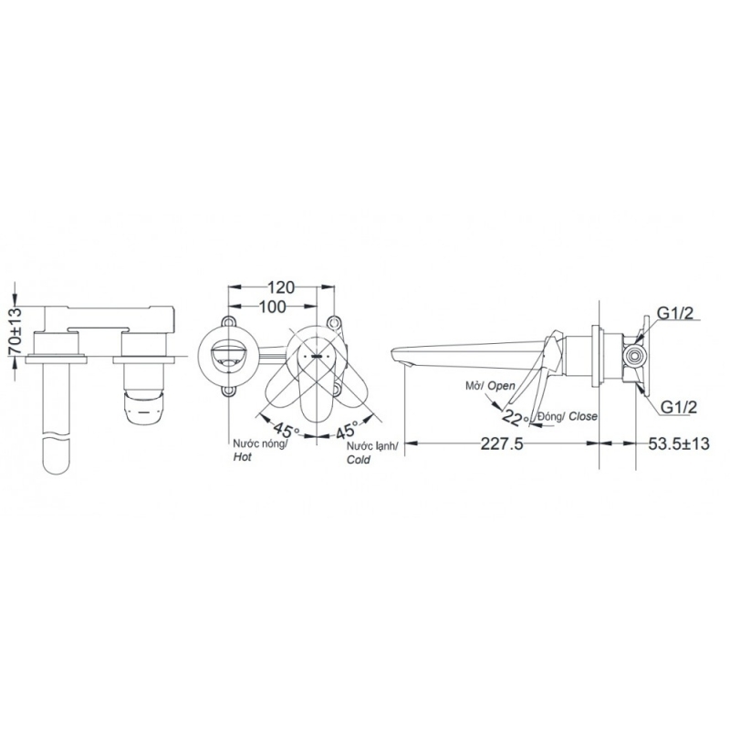Vòi Lavabo TOTO TLS04309B Nóng Lạnh Gắn Tường