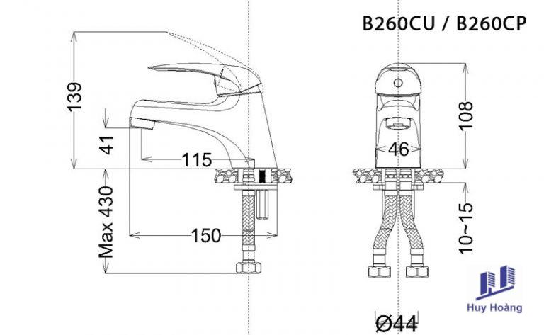 Thông tin cơ bản vòi lavabo Caesar B260CP nóng lạnh