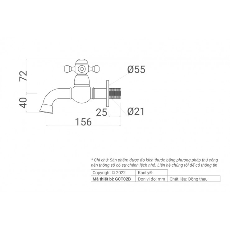 Vòi Nước Lạnh Kanly GCT02B Gắn Tường Bằng Đồng Màu Đen