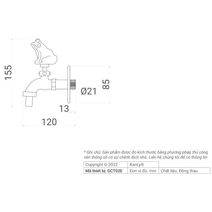 Vòi Nước Lạnh Kanly GCT02E Gắn Tường Bằng Đồng Hình Con Ếch