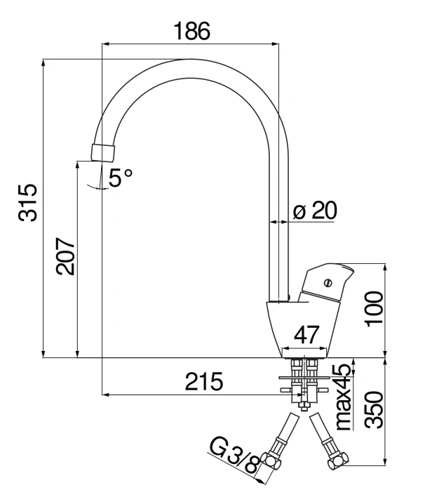 Vòi nóng lạnh xoay 180° cho phạm vi tiếp cận rộng, giúp bạn dễ dàng thao tác rửa ở nhiều góc độ khác nhau. Sự linh hoạt này đặc biệt hữu ích khi rửa những vật dụng kích thước lớn hoặc khi cần vệ sinh toàn bộ chậu rửa. Dù không gian bếp nhỏ hay rộng, khả năng xoay mượt mà vẫn luôn mang lại sự tiện lợi tối đa.