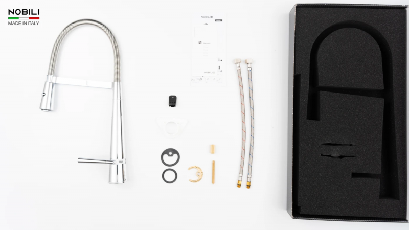 Vòi rửa bát cần mềm NOBILI LIKID NB880 được sản xuất nguyên khối bằng công nghệ hiện đại tại Ý, trải qua quy trình khép kín ngay trong nhà máy Nobili – từ khâu đúc đồng nguyên chất, gia công chi tiết cho đến hoàn thiện từng linh kiện nhỏ nhất. Chính sự tỉ mỉ này mang lại cho sản phẩm chất lượng đồng nhất, bền vững và tinh xảo vượt trội.