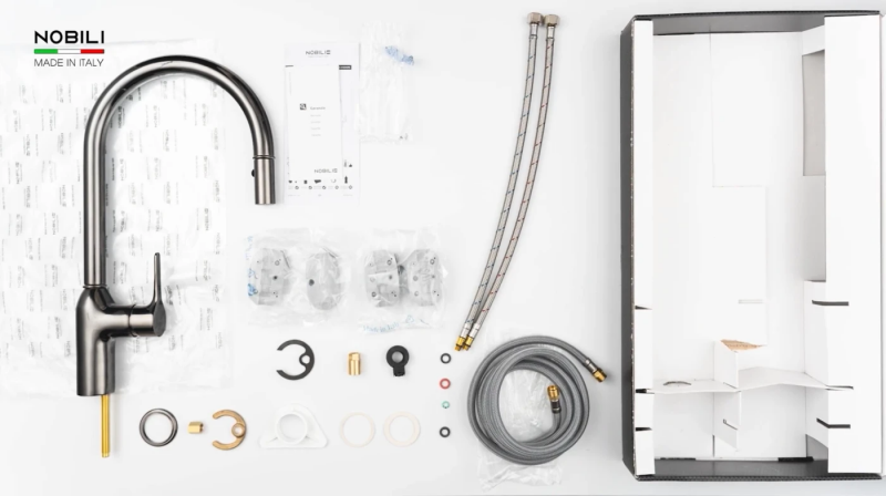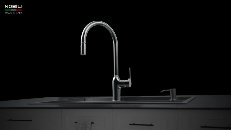 Vòi bếp Nobili được đúc nguyên khối bằng máy móc công nghệ cao tại Ý - theo một quy trình hoàn toàn khép kín. Hoàn thiện sản phẩm tại Ý kể cả với từng linh phụ kiện nhỏ nhất.