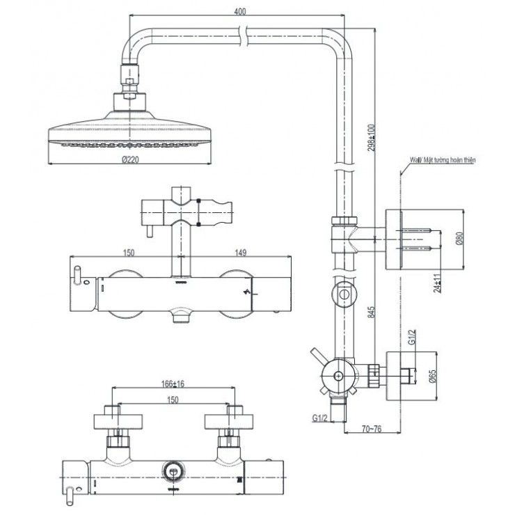 Vòi Sen Cây TOTO TBW01302AA Nóng Lạnh 220mm