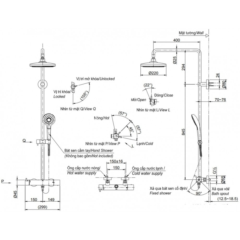 Vòi Sen Cây TOTO TBW01302B Nóng Lạnh