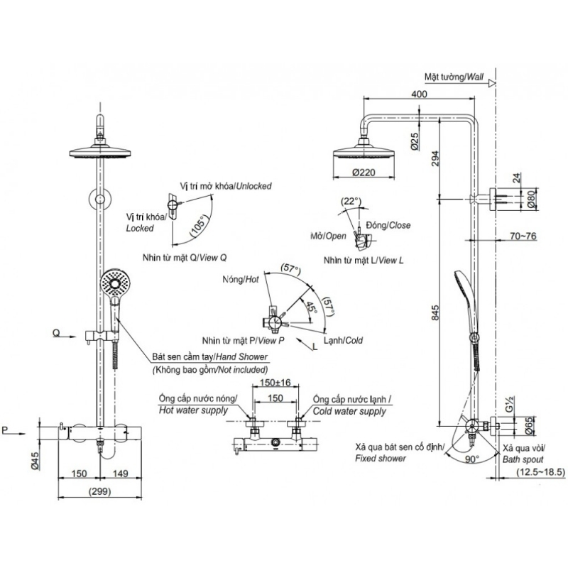Vòi Sen Cây TOTO TBW01303BA (TBW01303B) Nóng Lạnh Massage