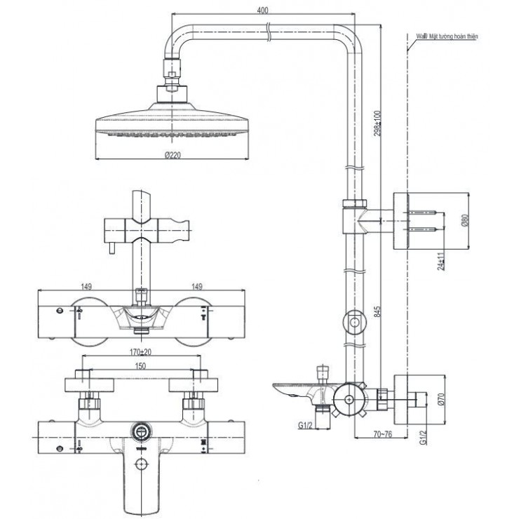 Vòi Sen Cây TOTO TBW01401AA/TBW07008A Nhiệt Độ