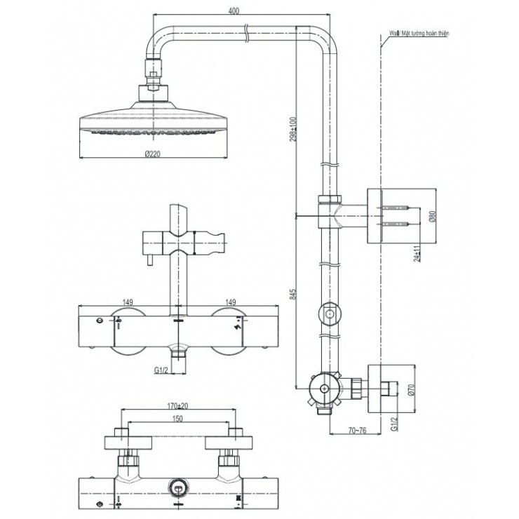 Vòi Sen Cây TOTO TBW01402AA Nhiệt Độ 220mm