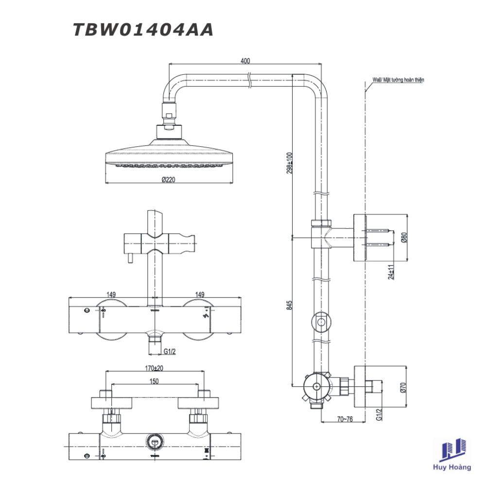 Vòi Sen Cây TOTO TBW01404BB (TBW01404B) Nhiệt Độ Massage