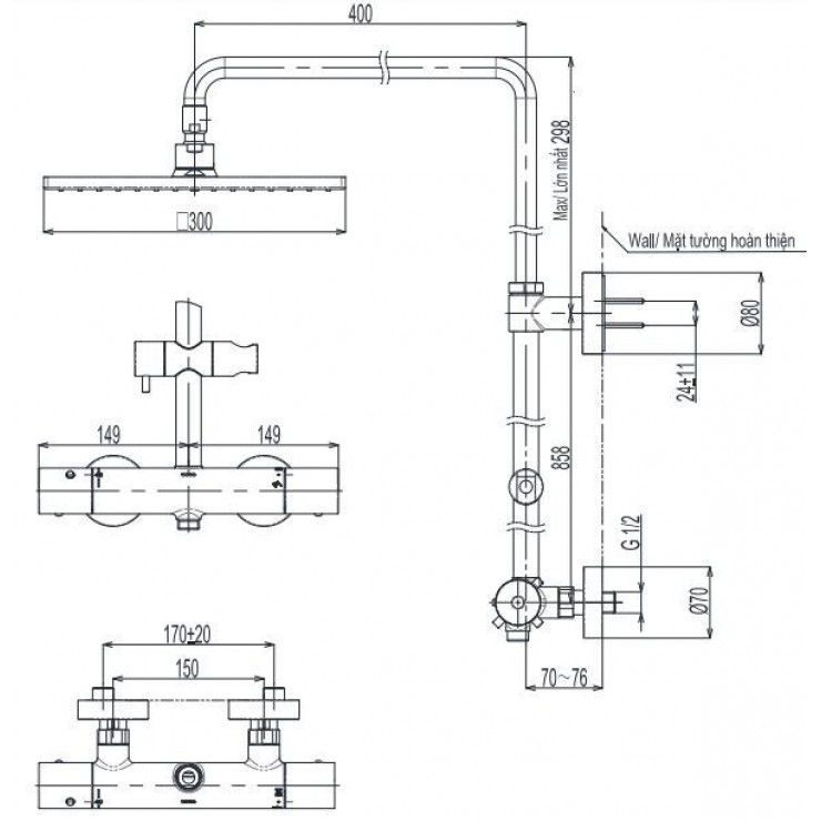 Vòi Sen Cây TOTO TBW08406A Nhiệt Độ Vuông 300mm