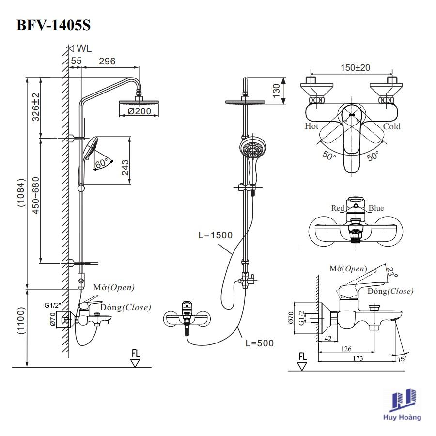 Vòi Sen Tắm Cây Inax BFV-1405S (BFV1405S) Nóng Lạnh