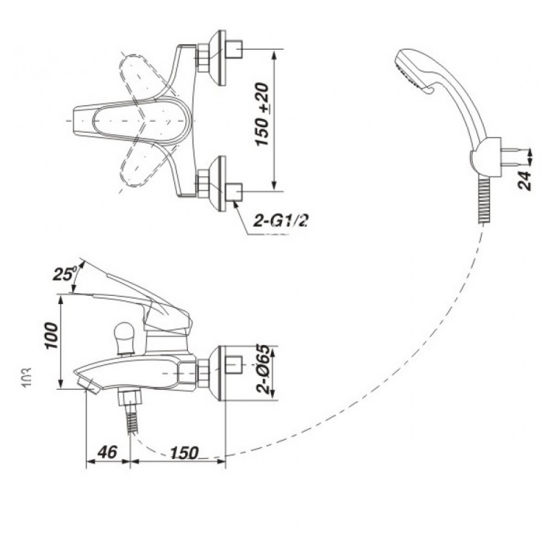 Bản vẽ kỹ thuật Vòi sen tắm nóng lạnh INAX BFV-283S