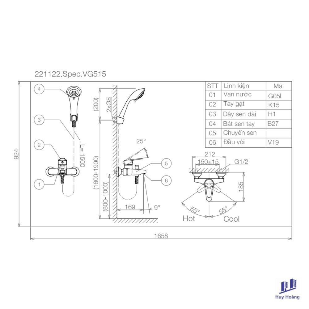 - Sen tắm Viglacera VG515 nóng lạnh được thiết kế (tinh tế, sang trọng) đến từ thương hiệu thiết bị vệ sinh Viglacera