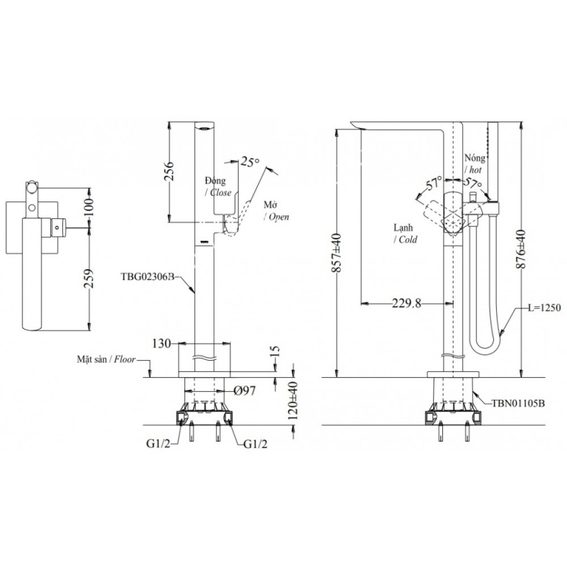 Vòi Sen Xả Bồn Tắm TOTO TBG02306BA/TBN01105B