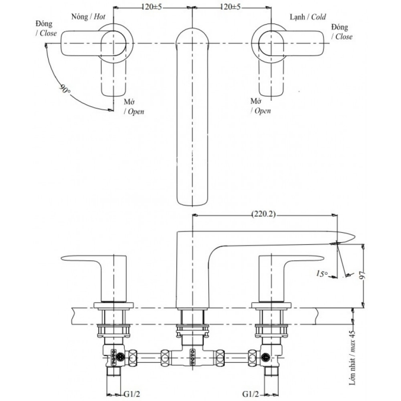 Vòi Xả Bồn Tắm TOTO TBG04201BA (TBG04201B) 3 Lỗ