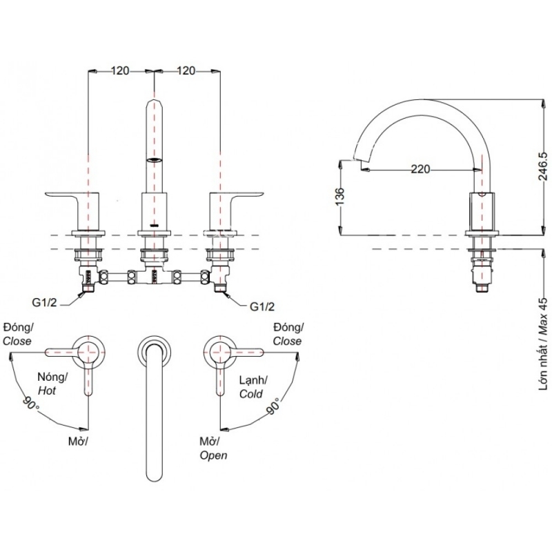 Vòi Xả Bồn Tắm TOTO TBS01201B 3 Lỗ