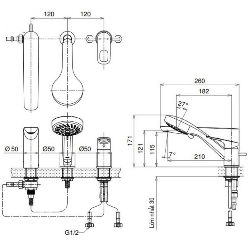 Bộ Vòi Sen Xả BồnVòi Sen Xả Bồn TOTO